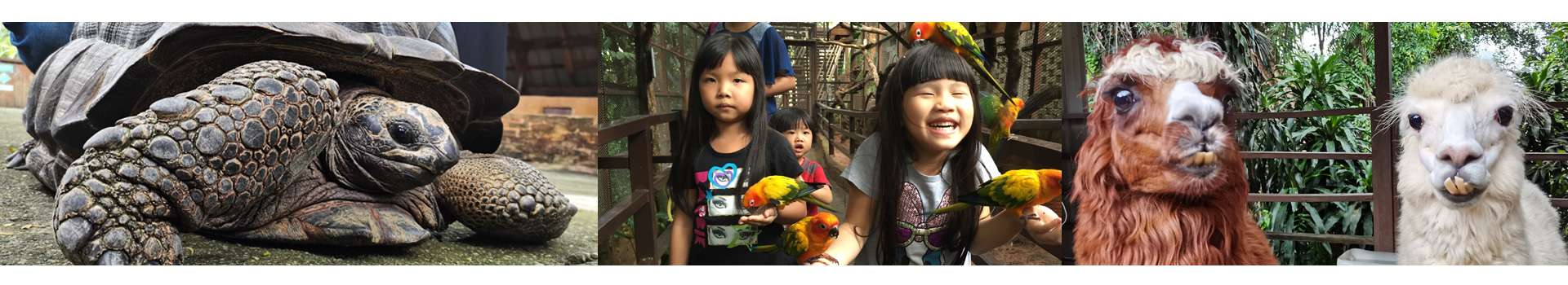 这里有很多可爱的小动物如狐獴、雪貂、土拔鼠、小袋鼠、鸸鹋、陆龟、猕猴、水豚、草泥马、兔子,以及相当罕见的猫鼬和狨猴等等。这里的解说员也会讲解动物的特性和背景让游客学玩边学,观看动物之余,学习到动物们的生态知识。