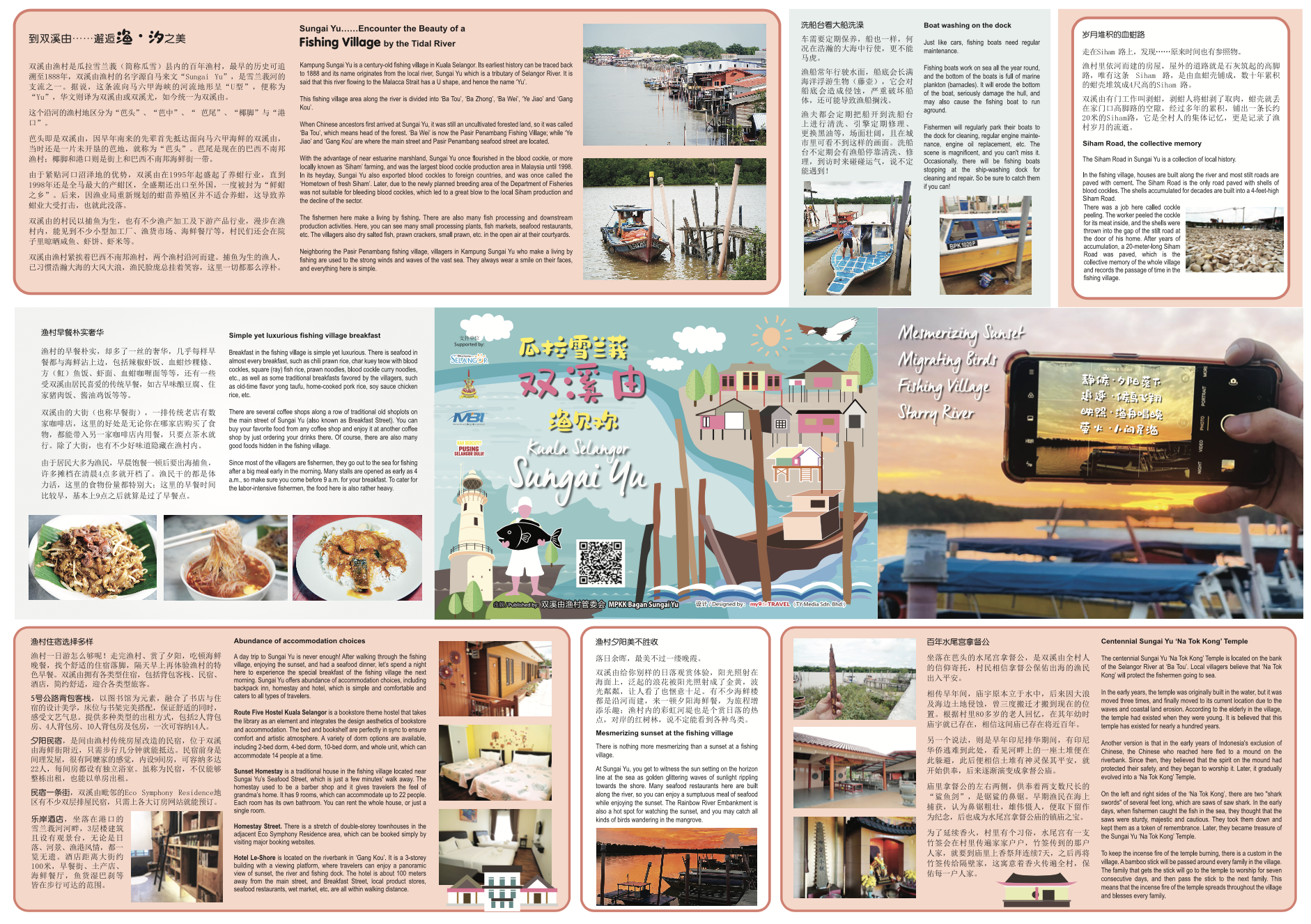 渔村一日游怎么够呢!走完渔村、赏了夕阳,吃顿海鲜晚餐,找个舒适的住宿落脚,隔天早上再体验渔村的特色早餐。双溪由拥有各类型住宿,包括背包客栈、民宿、酒店,简约舒适,迎合各类型旅客。