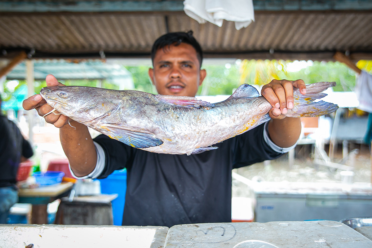 Ikan yang dijual dalam Sungai Pelek memang segar dan harga murah.