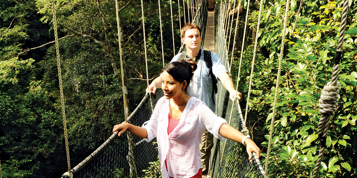 雨林吊桥是国家公园最受欢迎的活动,是这里著名的拍照景点。这座长达510米的吊桥,距离地面约45米,是世界上最长的树上吊桥。吊桥并无使用螺栓及铁钉,而是在树与树之间,以绳索捆绑而成。徒步走在吊桥上可以把公园内的植物及动物一览无遗,长达半公里的 “凌空感” 也绝对让人印象非常深刻,是个很特别的体验。